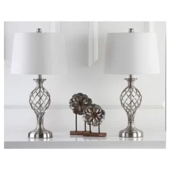 (Set Of 2) 26.8″ Lattice Urn Table Lamp Nickel (Includes CFL Light Bulb) – Safavieh