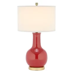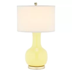 The Paris Lamp is sure to illuminate any room with sophisticated elegance and modern style. Its classic gourd body of bright colored glazed ceramic is accented with a gold finished metal neck and base and topped with a hard off-white drum shade of cotton. The Paris Lamp is available in a variety of colors to best suit your personal tastes and decor. It has a rotary switch for versatile lighting and has a E26 bulb base type.