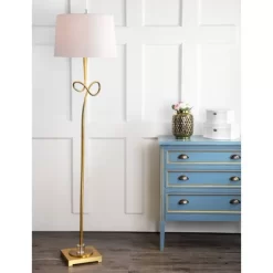 Poetry in motion, this elegant modern floor lamp was designed to appeal to the eye of the contemporary tastemaker. Crafted with a rich gold finish, its deluxe sculptural figure is adorned with shimmering crystals and topped with a structured white shade. The gold body is constructed from iron and the shade is crafted from 100% Cotton material. It features clear accent pieces made from crystal. This floor lamp is the ideal choice for Contemporary, Glam, Modern or Transitional style interiors.