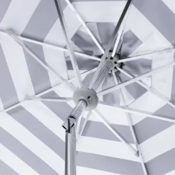 In the heart of Miami Beach sits the palatial art deco hotel whose cosmopolitan guests inspired this fashionable outdoor umbrella. Its bold black and white stripes bring timeless style while its clean lines make it contemporary open air couture. This umbrella is a lovely addition for any outdoor area to escape the sun to relax.