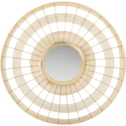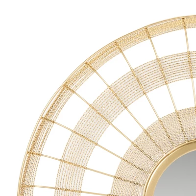 Bring elegance to any living room, dining room, or foyer with this contemporary mirror. Its intricate wire border and layered pattern is finished in shiny brass. Care Instructions: Dust with a soft, dry cloth. Do not use abrasive cleaner. To clean mirror, spray a small amount of glass cleaner onto a lint-free cloth and wipe mirror clean. Disclaimer: Please note that this product is hand crafted by artisans, and none are exactly alike. Each item will have different shadings, patterning and variations in color.