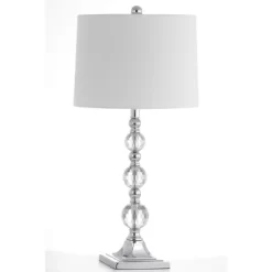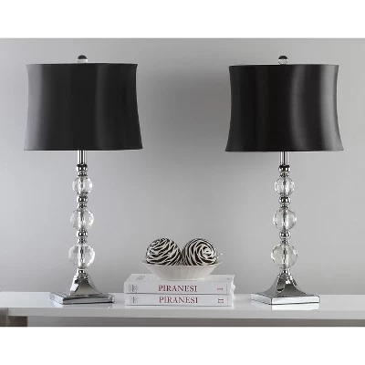 Inspired by Irish cut crystal, the Maeve Crystal Ball lamp refracts light beautifully in elegant traditional rooms. Crafted of crystal with sparkling chrome accents, this romantic set of two lamps features beautiful satin shades. Care Instructions: Before cleaning any lamp shade or fixture, disconnect the power source. Wipe with a soft, dry cloth. Avoid the use of chemicals and household cleaners as they may damage the finish.