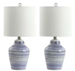 This urn table lamp elevates any living room with its graceful curves and artistic pattern. Crafted with the timeless beauty of ceramic, its white hue is paired with a chrome finial and off-white cotton shade. Sold in sets of two. Care Instructions: Before cleaning any lamp shade or fixture, disconnect the power source. Wipe with a soft, dry cloth. Avoid the use of chemicals and household cleaners as they may damage the finish.