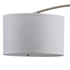 Eloquent in its expression of pure geometry, this dramatic arc floor lamp moves with ease from transitional to contemporary spaces. Crafted with dramatically curved arm in antique brass with marble base, it is crowned with a chic white cotton drum shade. Care Instructions: Before cleaning any lamp shade or fixture, disconnect the power source. Wipe with a soft, dry cloth. Avoid the use of chemicals and household cleaners as they may damage the finish.