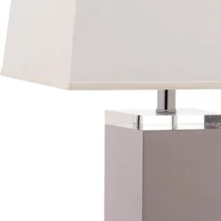 Strong geometric lines and an elegant base imbue the Deco Leather Lamp with timeless Art Deco style. Crafted of gray PU leather with silver chrome finial and stand, this classic lamp comes with a rectangular empire shade. Sold in sets of two. This set of two lamps are ideal for Contemporary, Glam or Modern style homes.